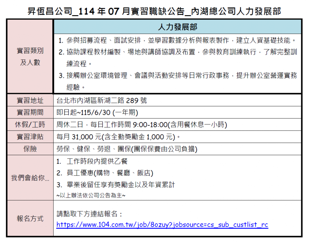 敬請協助多多宣傳,期待有志於在總公司成長的同學加入昇恆昌大家庭!